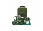 Černá příborová sada z nerezové oceli ve stahovacím sáčku. Vlastnosti: Obsahuje kávovou lžičku, nůž, vidličku a lžíci s logem Fox.