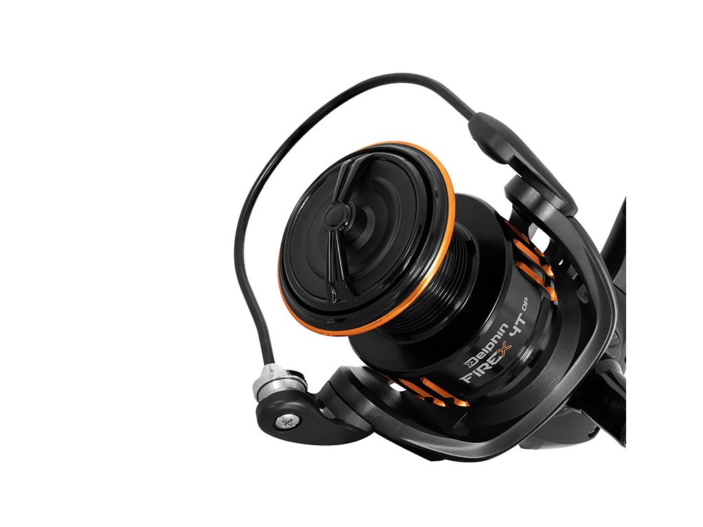 O hladký a trvanlivý chod se postará soustava až 6 kvalitních kuličkových ložisek (5+1). Černá kovová cívka s efektními oranžovými výřezy a linií na přední hraně je dostatečně hlboká a tedy pojme potřebné množství vlasce pro různé rybolovné techniky.