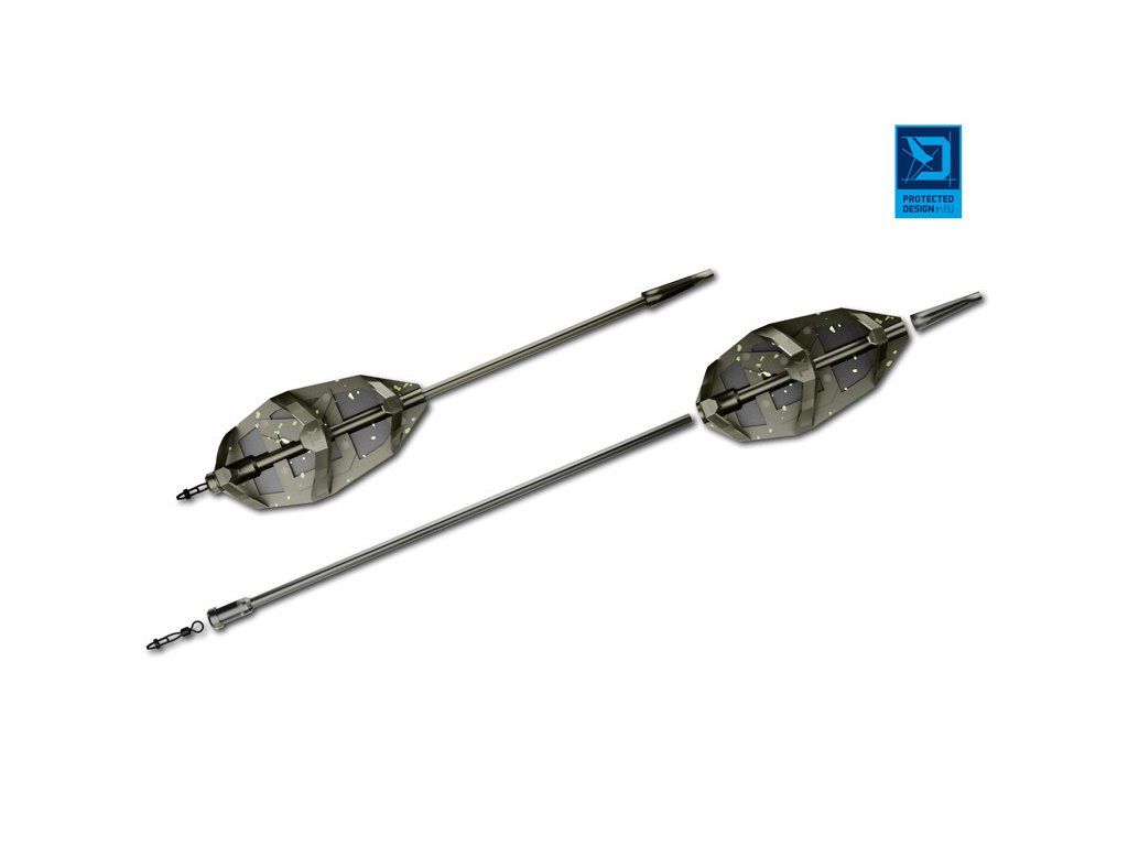Velkou výhodou je systém rychlé výměny, který díky vyjímatelné trubičce a vnitřní drážce v krmítku umožňuje změnit hmotnost zátěže během vteřin. Stačí vysunout trubičku a krmítko sundat z vlasce bez nutnosti zdlouhavého stříhání či převazování montáže. Aerodynamický profil v kombinaci s prodlouženou trubičkou zajistí delší a přesnější hody, zatímco univerzální průměr otvoru ochranné trubičky bez problémů pojme rychloupínací obratlík.