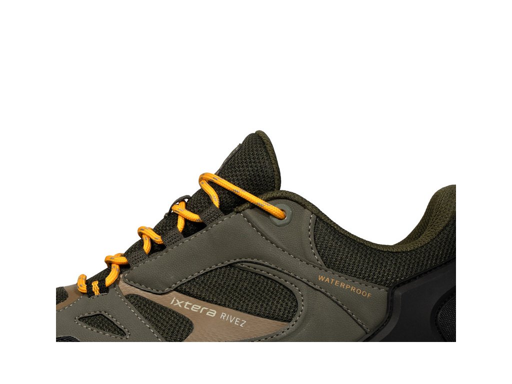 Boty RIVEZ mají decentní outdoorový vzhled v kombinaci olivové, šedé a černé barvy s výraznými šňůrkami, které při spojení s jejich vlastnostmi tvoří spolehlivého partnera do každého počasí, ať už se rozhodnete pro náročnou turistiku nebo lehkou procházku v přírodě. V balení naleznete i náhradní pár šňůrek v tmavé barvě pro případ, že upřednostníte decentnější vzhled. Pro rychlejší obouvání je na patě navíc umístěn praktický taháček.