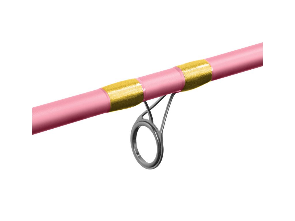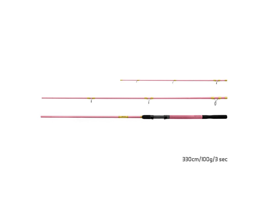 Základem je ověřený štíhlý blank s parabolickou akcí a výbornými mechanickými vlastnostmi. Celá rukojeť je potažena EVA pěnou, která je velmi příjemná na dotek i ve studeném zimním počasí. Navíc je navržena v barevné dvojkombinaci růžové s černou, což vytváří vizuálně velmi pěkný prvek. Rukojeť je v jednom místě ergonomicky zúžená a ukončena je vkusným hliníkovým prvkem růžové barvy s logem. Díky citlivým špičkám, které jsou s prutem dodávány, vám neunikne ani ten nejjemnější záběr od malých ryb. Blank je osazen kvalitními a lehkými SIC očky, které nevytvářejí žádné nadbytečné tření a odpor při průchodu vlasce. V základu je prut dodáván se 1. karbonovou (Heavy) a 2. CarbonGlass (Light, Medium) špičkami.