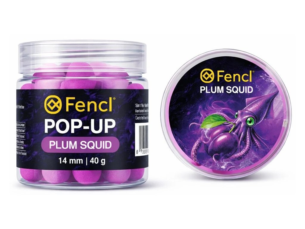 Fencl Pop-Up Plum Squid jsou plovoucí boilies o průměru 14 mm, které kombinují sladkou švestku s masovým nádechem olihně.