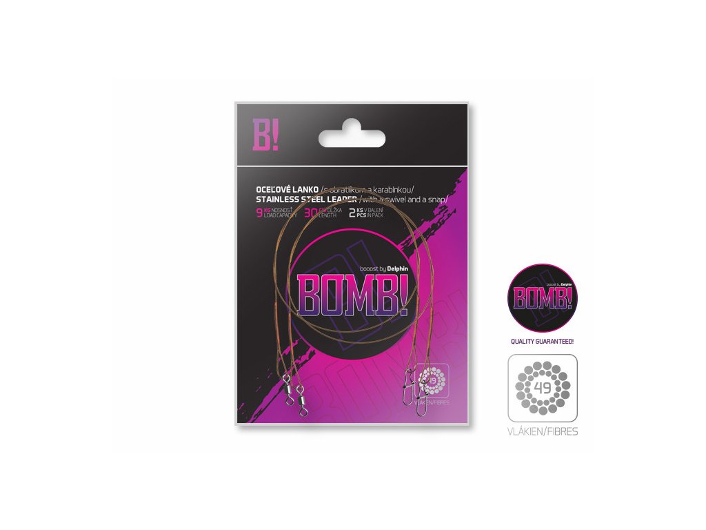 Ocelové lanko BOMB! s obratl. a karabínkou / 49 vláken 7kg 20cm ks2