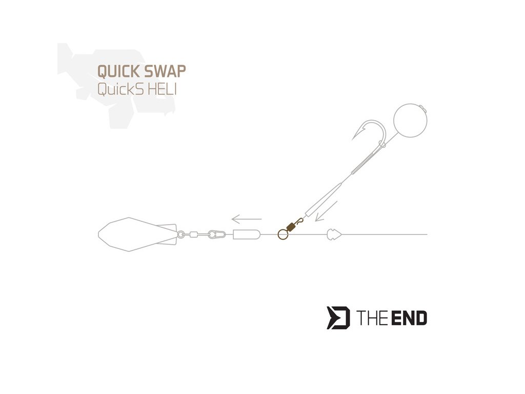 Pevnost a zvětšené očko, právě to jsou hlavní vlastnosti rychloupínacího obratlíku Delphin TheEND QuickS Heli, který byl speciálně navržen pro použití na helikoptérové montáži. Díky zvětšenému očku snadno rotuje kolem osy při nahazování a jeho velikost umožňuje natáhnout ho na nárazovou korálku ze série TheEND. Kromě toho výrazně zrychluje a zjednodušuje výměnu návazců.