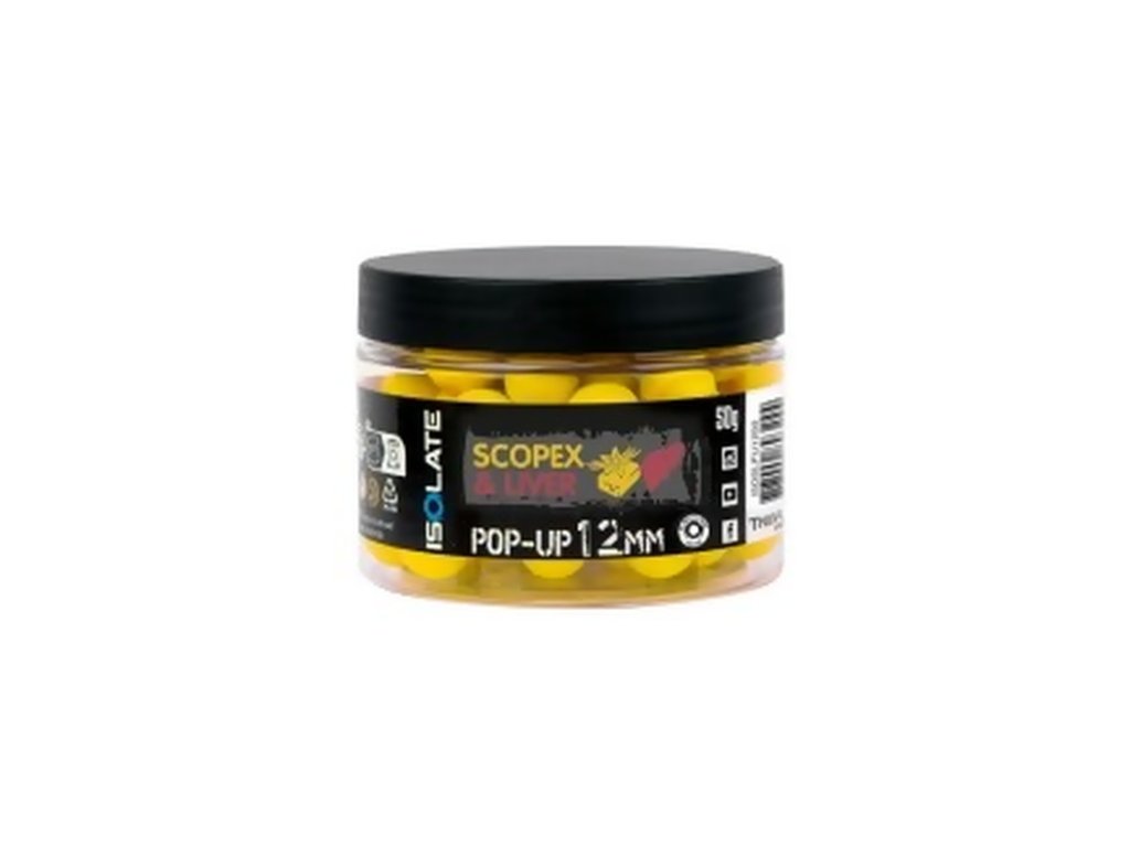 Díky nutričnímu profilu a osvědčené účinnosti Isolate Scopex Liver Boilies jsou tyto pop-upy nezbytnou nástrahou, která vám poskytne významnou výhodu, zejména při lovu opatrných ryb v těžkých vodách. Jejich výrazná žlutá barva uvolňuje směs atraktivních příchutí, včetně krémově sladkého Scopexu a kyseliny máselné.