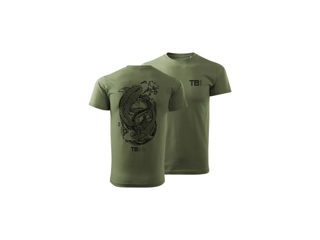 Kvalitní unisex tričko TB Baits v edici Olive edition s výrazným motivem kaprů na zádech.