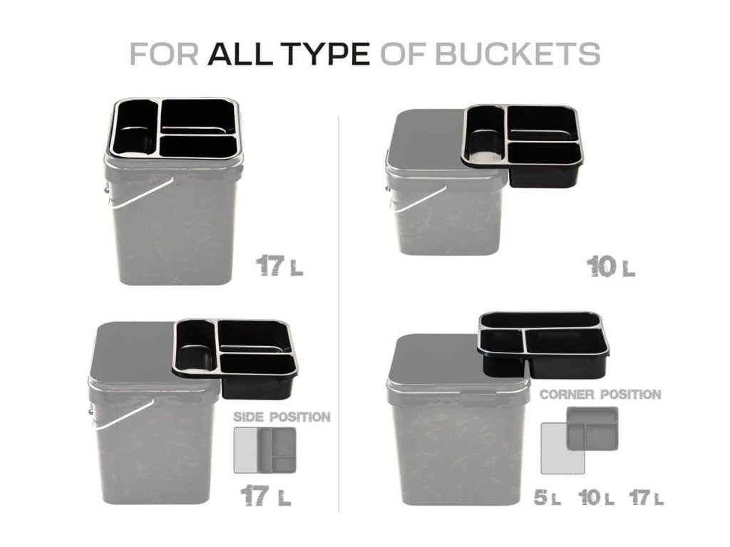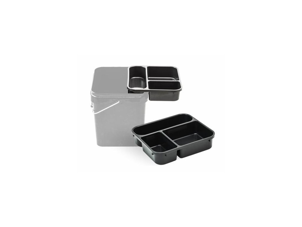 Praktická tříkomorová vložka určená pro přehledné uložení příslušenství, návnad a krmení.